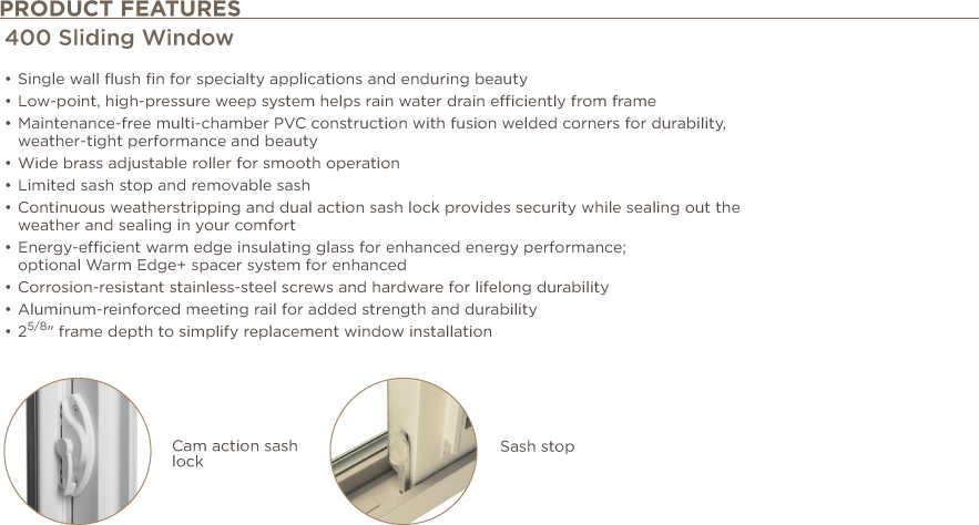 400 sliding windows combine reliable performance with a smart look, making this window an unbeatable choice for those looking for value, function and style.