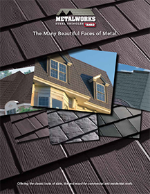 MetalWorks steel shingles pair the latest looks with G-90 steel. Whether it's the traditional look of slate, the lustrous look of tile, or the dramatic look of wood, MetalWorks shingles offer a beautiful choice for a wide range of residential and commercial applications. The shingles are available in a full array of colors, all of which are ENERGY STAR qualified.